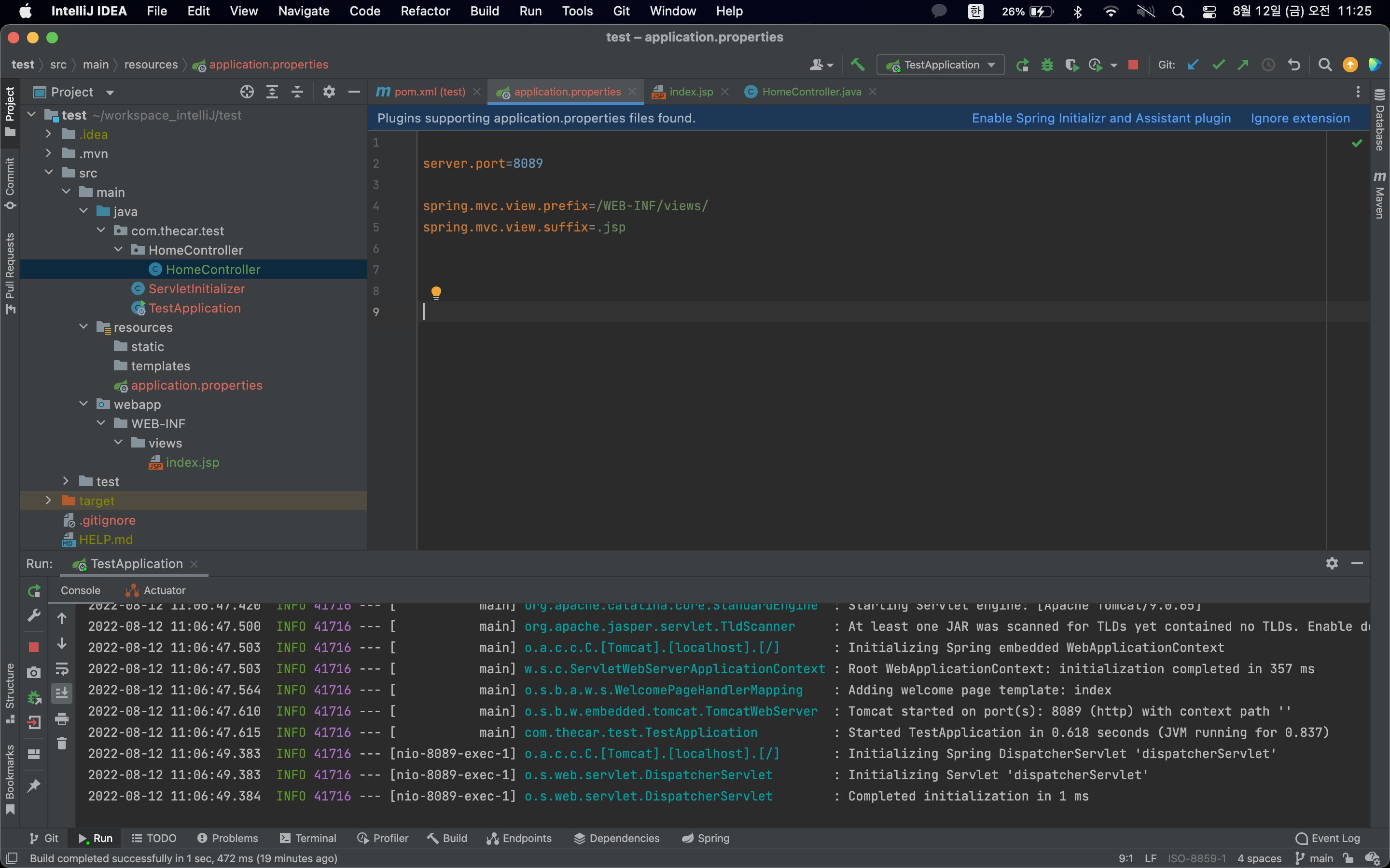 본인은 현재 8080 포트를 다른 프로젝트에서 사용하고있어 포트 번호를 8089로 변경하였다.