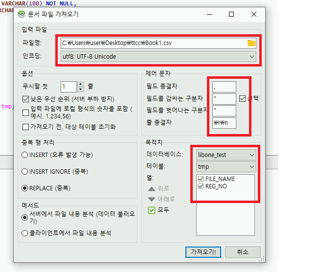 tmp테이블이 생성됐다면 이제 csv 파일로 데이터를 넣어보자.
