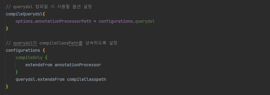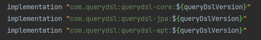 implementation "com.querydsl:querydsl-jpa" : QueryDSL을 사용하기 위한 라이브러리