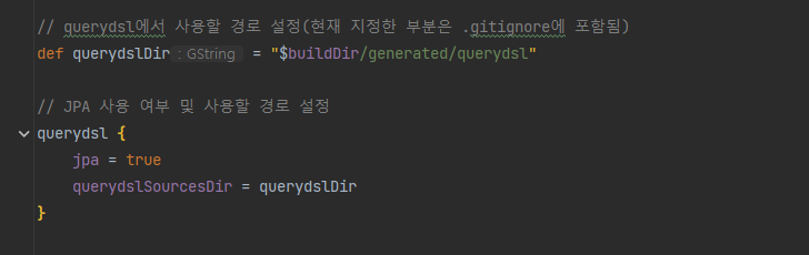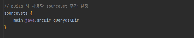 gradle build를 할 때 QClass도 함께 build 시키기 위해 sourceSets에 디렉토리 위치를 추가해 주는 부분이다.