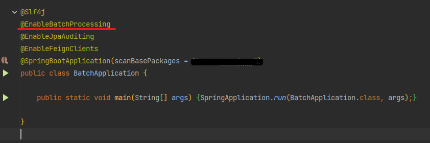 Main class에 @EnableBatchProcessing 어노테이션을 추가해 준다.