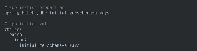 Spring Batch가 실행될 때 여기 있는 sql 중에 본인이 설정한 Database유형에 맞는 SQL을 실행하여 Spring Batch를 위한 Table들을 생성하게 되는 것이다.