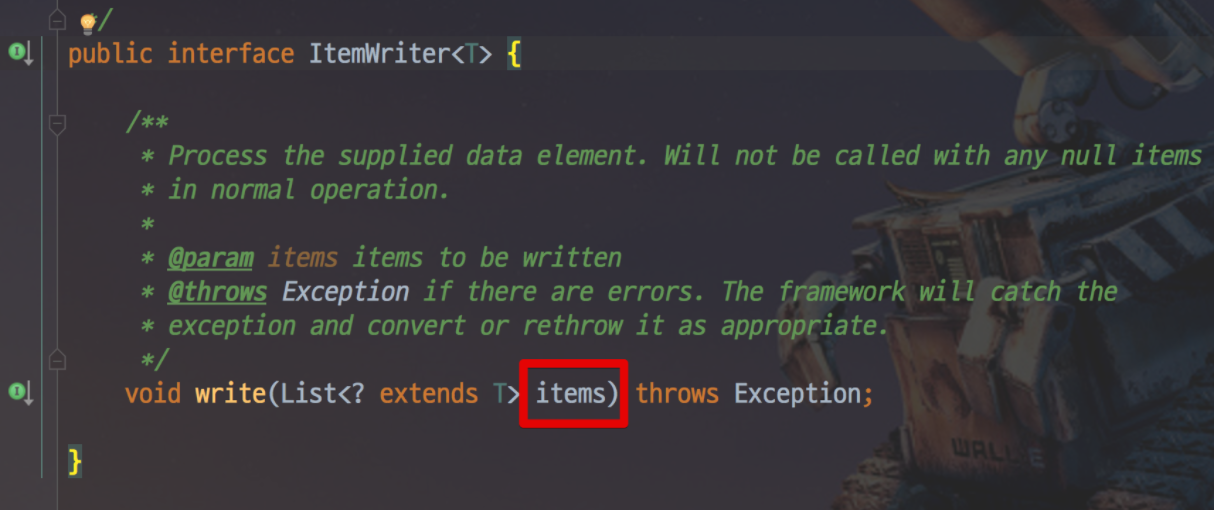 - ItemWriter : 데이터를 입력하는 수단 (insert or update 등)
